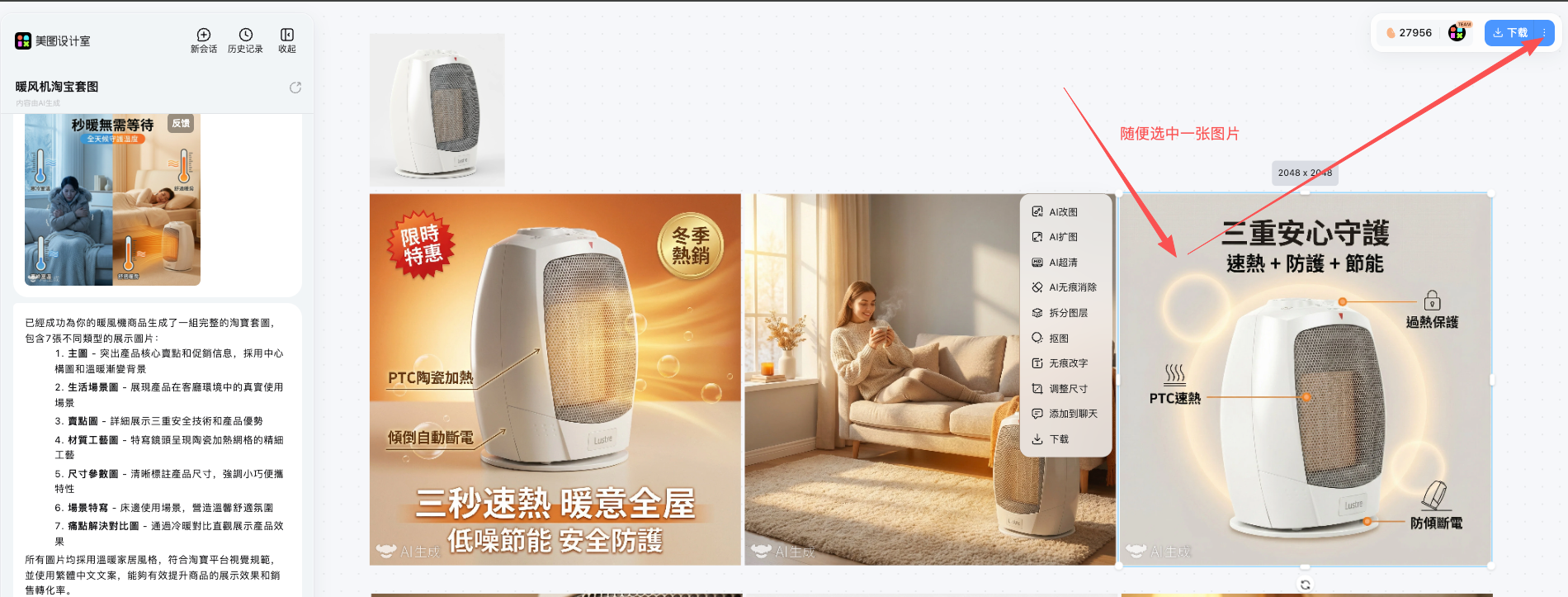 图片是一款xxx产品,保证产品所有的细节、大小、设计xxx等不变形(哪些特征容易变形就写哪些),产品尺寸是xxx(想要展示的具体尺寸),产品亮点是:xxxxx(想通过图片展示的卖点信息),使用X文(需要的语言),生成xxx(套图/场景图等指令),销售到X国(销往的国家) 例:图片是一款电风扇,保证产品所有的细节、大小、配色等不变形,产品尺寸是:整体高1.5米,底座长50cm、宽50cm,风扇部分长40cm、宽20cm、高40cm,高1.5m,产品亮点是:使用静音、材质无甲醛母婴友好、耐用、重量轻,使用英文,生成一套亚马逊套图,销售到美国 |